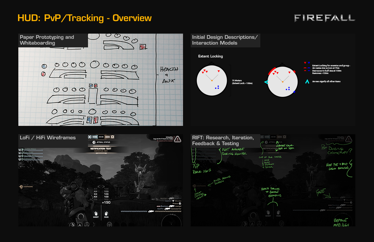 With a new iteration of Firefall underway, we wanted to modify our First Time User Experience (FTUE). We started experimenting with new methods to validate our design choices. I spearheaded the creation of on site testing stations. External players could come in, play through our new FTUE, survey them, and document their responses.